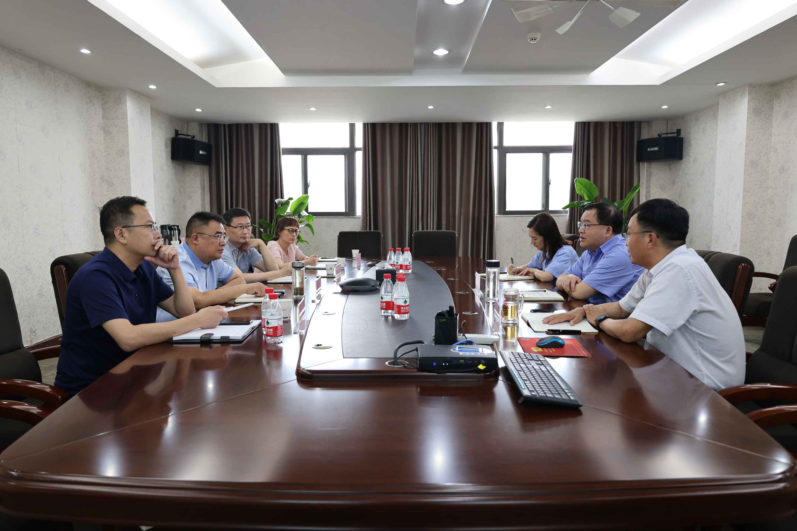 熊小平匯報(bào)了公司上半年經(jīng)營(yíng)情況,各產(chǎn)業(yè)收入指標(biāo)完成情況以及上市進(jìn)程。陳陽(yáng)陵就行業(yè)環(huán)境的變化和公司當(dāng)前市場(chǎng)形勢(shì)進(jìn)行了解讀,并對(duì)市國(guó)資委對(duì)企業(yè)發(fā)展的關(guān)心表示感謝。