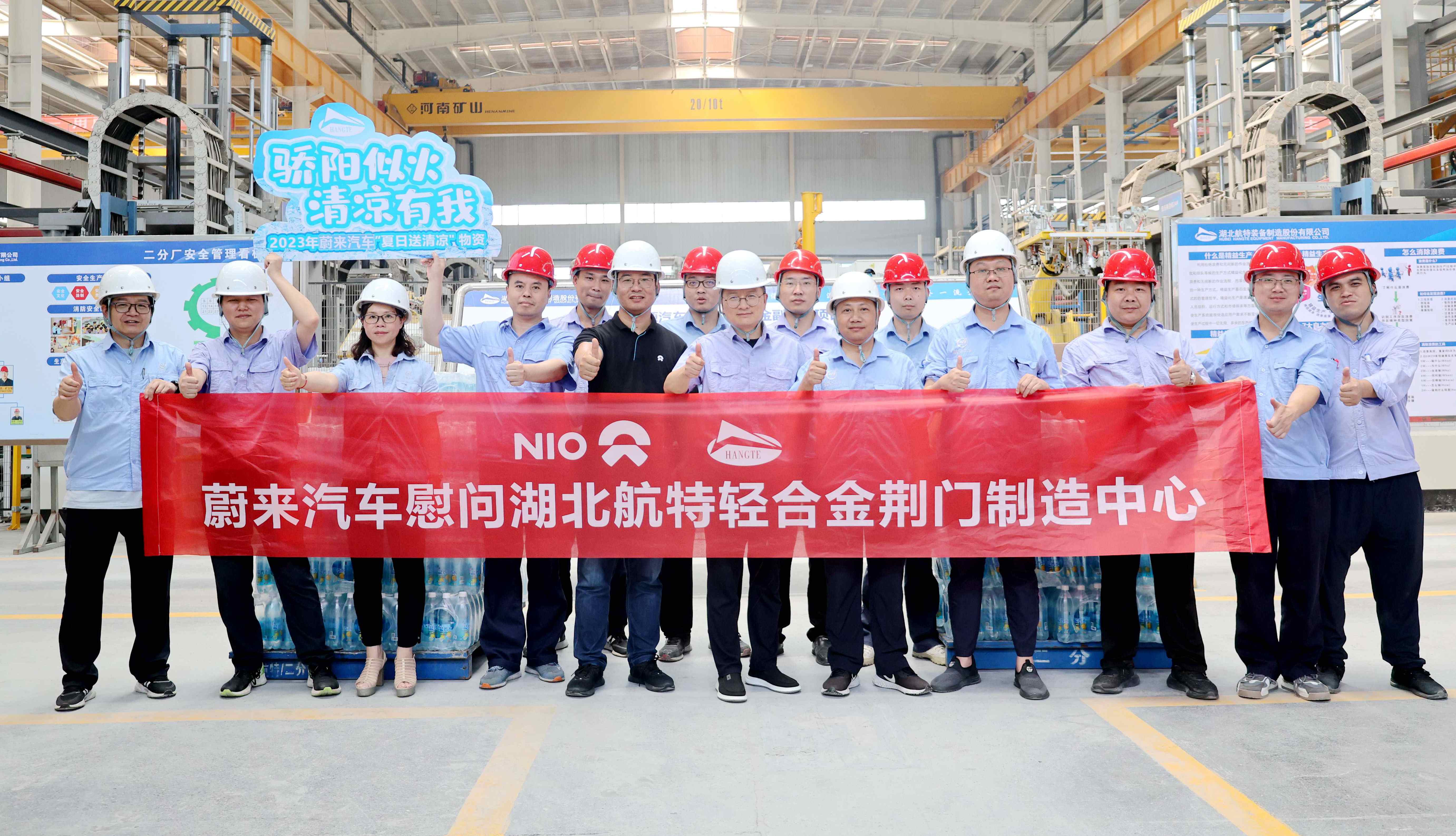8月2日,蔚來汽車PIM白金帥代表蔚來到航特輕合金(荊門)制造中心進(jìn)行慰問活動(dòng),公司副總經(jīng)理李云翔、輕合金(荊門)制造中心領(lǐng)導(dǎo)班子一同參與活動(dòng)。