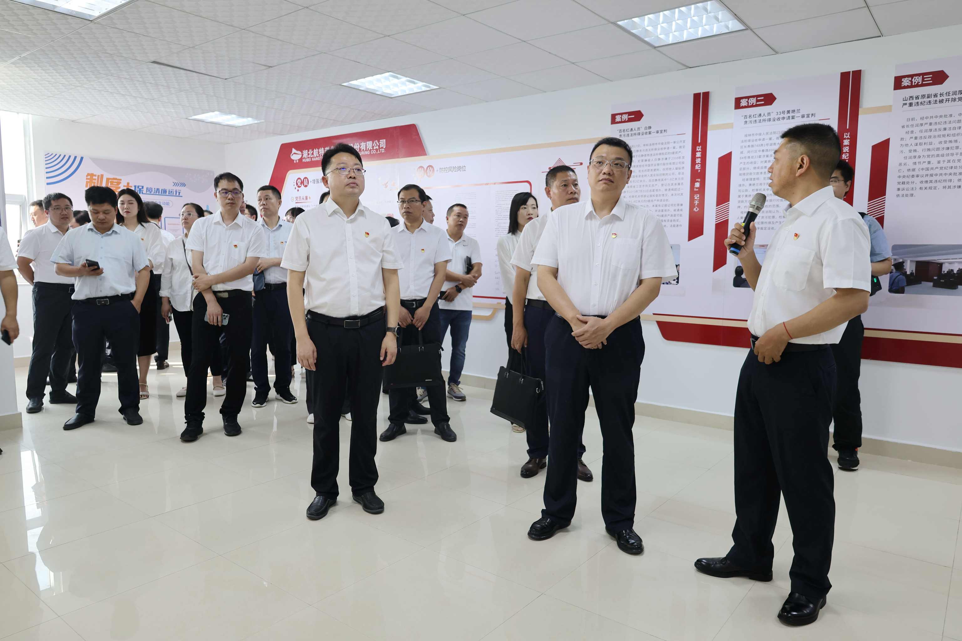 荊門(mén)高新區(qū)黨工委副書(shū)記、掇刀區(qū)委副書(shū)記、區(qū)委政法委書(shū)記李鵬,荊門(mén)高新區(qū)黨工委委員、紀(jì)工委書(shū)記、掇刀區(qū)委常委、紀(jì)委書(shū)記、區(qū)監(jiān)委主任王勇,區(qū)直各單位主要負(fù)責(zé)人、區(qū)規(guī)模以上企業(yè)代表觀摩了公司“廉政教育學(xué)習(xí)基地”。